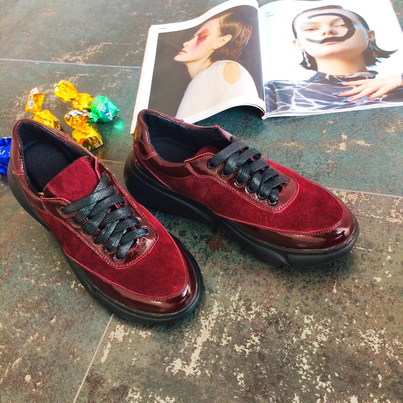 Кроссовки кожаные вишня