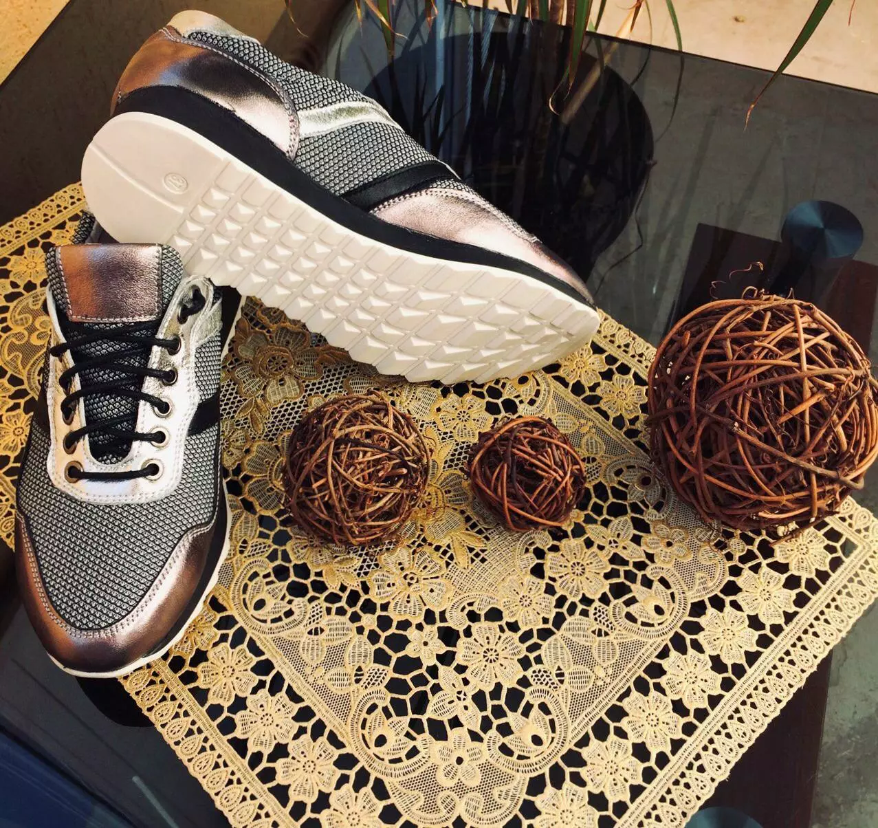 Кроссовок женский серебро